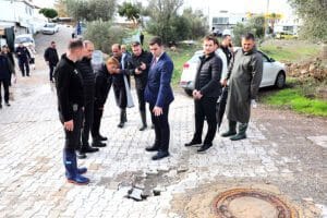 “Kentimizin her noktasında saha çalışmaları yapıyor ve esnafımızla, vatandaşlarımızla istişarelerde bulunuyoruz. Bu hafta saha ziyaretlerimize şiddetli yağmurdan etkilenen bölgemiz Turgutreis’ten başladık. Bodrum’umuzun her noktasında, hemşehrilerimizin yaşam kalitesini artırmak ve gerekli iyileştirmeleri yapmak en büyük önceliğimiz. 7167 Sokak’ta esnaflardan gelen istinat duvarı talebini de inceledim. Herhangi bir aksilik olmazsa ocak ayında çalışmaları başlatacağız.”