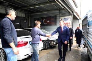 Başkan Mandalinci Gümüşlük Caddesi üzerinde bulunan esnafları da ziyaret ederek Turgutreis Sanayi ziyaretini tamamladı.