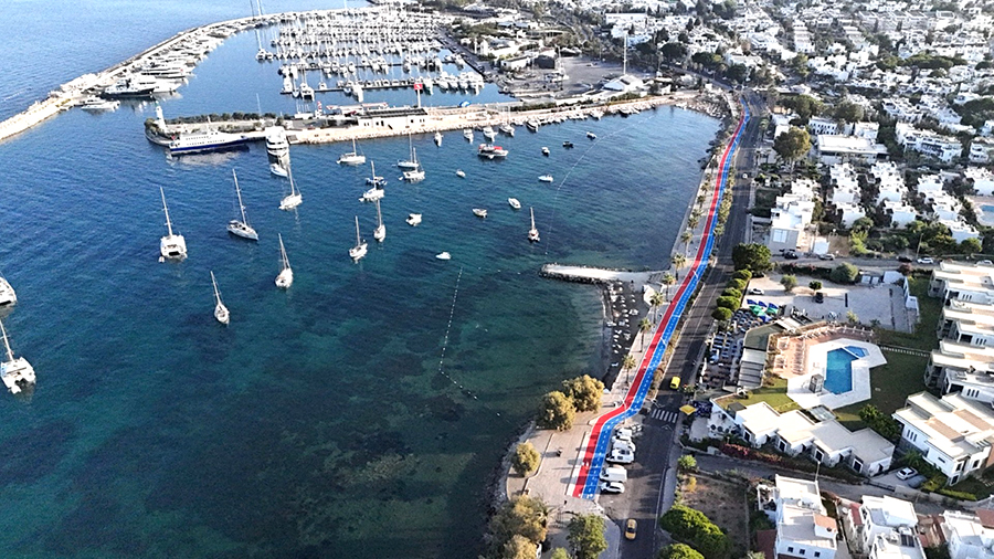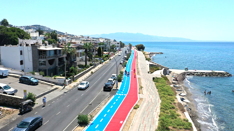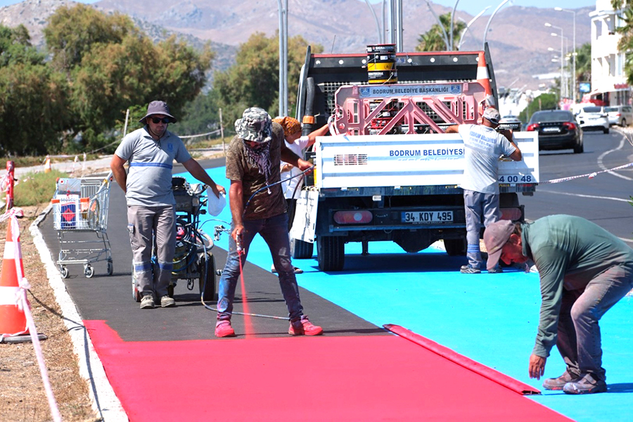 Son olarak Muğla Büyükşehir Belediyesi tarafından asfalt çalışmaları yenilenen 2 bin 900 metrelik bisiklet ve koşu yolu, Bodrum Belediyesi Fen İşleri Müdürlüğü ekiplerince çevreye zararlı olmayan özel bir boya ile boyanarak tamamlandı. Bodrum Belediyesi Destek Hizmetleri Müdürlüğü atölyelerinde üretilen 28 bank, 29 çöp kovası ve 26 küllük de belirli aralıklarla sahil şeridine yerleştirildi.