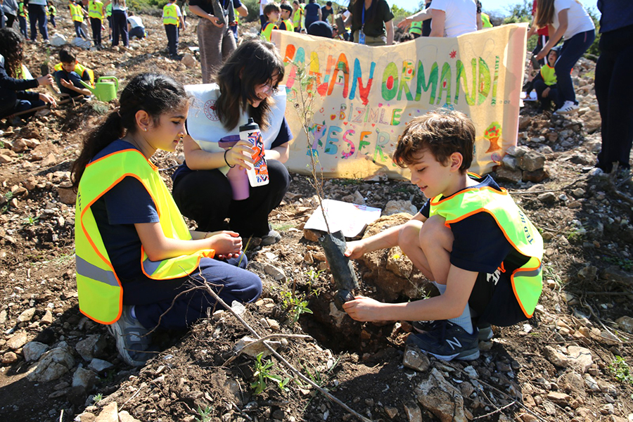 Yaklaşık 300 öğrencinin katılımıyla gerçekleştirilen etkinlikte, Bodrum’da daha önce yangınla zarar görmüş bir alanda kızılçam fidanları toprakla buluşturuldu. Her bir fidan, öğrencilerin doğaya olan bağlılığını ve birlikte büyüyen umutlarını simgeledi.