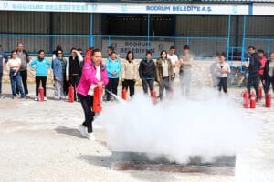 Belediye çalışanlarının yangın durumlarında hızlı ve etkili bir şekilde müdahale edebilmesi ve güvenli bir ortam oluşturulmasını amaçlayan eğitimler, geçtiğimiz haftalarda Bodrum Belediyesi Temizlik İşleri Müdürlüğü çalışanlarına düzenlenmişti.