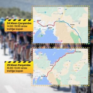 25 Nisan Perşembe Bodrum-Kuşadası etabında sporcular Belediye Meydanından çıkıp Atatürk Caddesini takiben Dr. Mümtaz Ataman Caddesini bitirip Swiss Otel Kavşağından Çevre Yoluna dahil olup Milas istikametine seyir edecekler saat 10.00-15.00 arası Garajaltı Kavşağı-Cevat Şakir Caddesi-Atatürk Caddesi-Mümtaz Ataman Caddesi-Milas Yolu trafiğe kapatılacaktır.