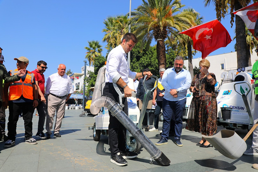 “Bodrum Belediyesi olarak Temizlik İşleri Müdürlüğümüze yeni katmış olduğumuz beş adet vakumlu yeni nesil süpürme araçlarının tanıtımı için buradayız. Tamamen elektrikli sistemle ve Avrupa standartlarında üretilen araçlar, sokaklarımızda hizmet verecek ekipmanlarımız olacak. Ekipmanlar için arkadaşlarımız gerekli eğitimleri aldılar. Sekiz saatlik şarj ve kullanım süresi var. Hem daha az sesli hem de sokak aralarını, caddeleri aralarını ve şehir içindeki sirkülasyonun yoğun olduğu bölgelerdeki temizlik faaliyetini çok daha ergonomik şekilde sağlayacak bir sistem. Kıymetli hizmetleri gerçekleştirdikleri için Başkan Yardımcımız Tanju Aksu’ya ve Temizlik İşleri Müdürümüz Serkan Kanik’e çok teşekkür ediyorum. Bodrum’un bütün sokaklarında, caddelerinde ergonomik cihazlarımızla daha iyi bir temizlik faaliyeti yürüteceğiz.”