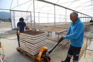 Bodrum Belediyesi Tarımsal Hizmetler Müdürlüğü tarafından Bahçeyaka Fide Üretim Serasındaki yenileme çalışmaları ardından fide üretimi tüm hızıyla sürüyor.