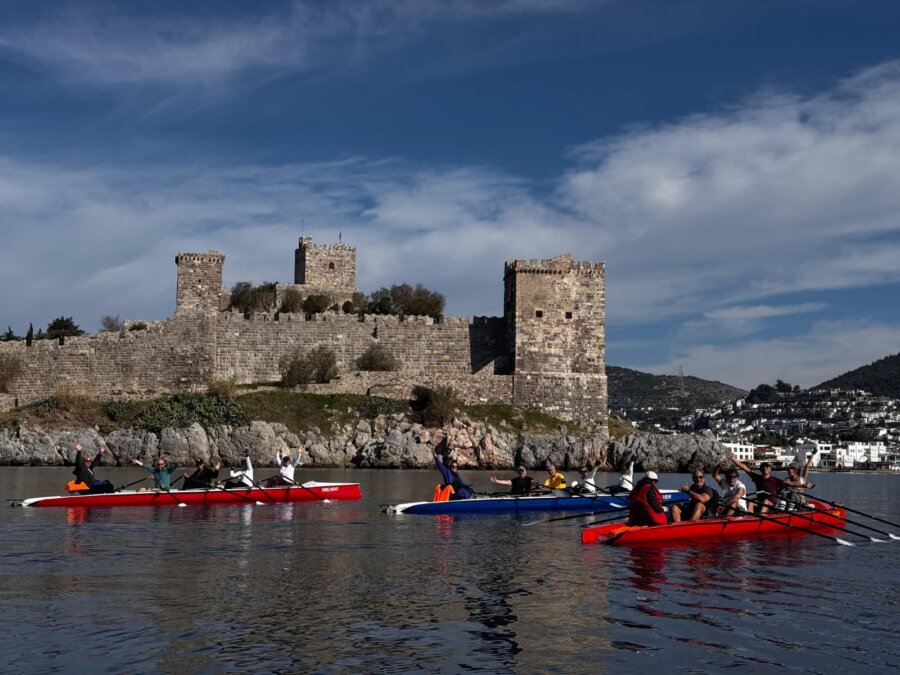 Bitez koyunda faaliyet gösteren Halikarnas Kürek Kulübü’nün sporcuları, Ocak ayının sonuna kadar devam edecek olan Zemheri fırtınası sırasında yüzünü gösteren güzel havayı fırsat bilerek küreklerini Bodrum Kalesi’ne çevirdi.